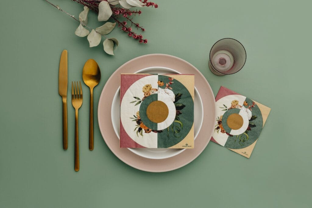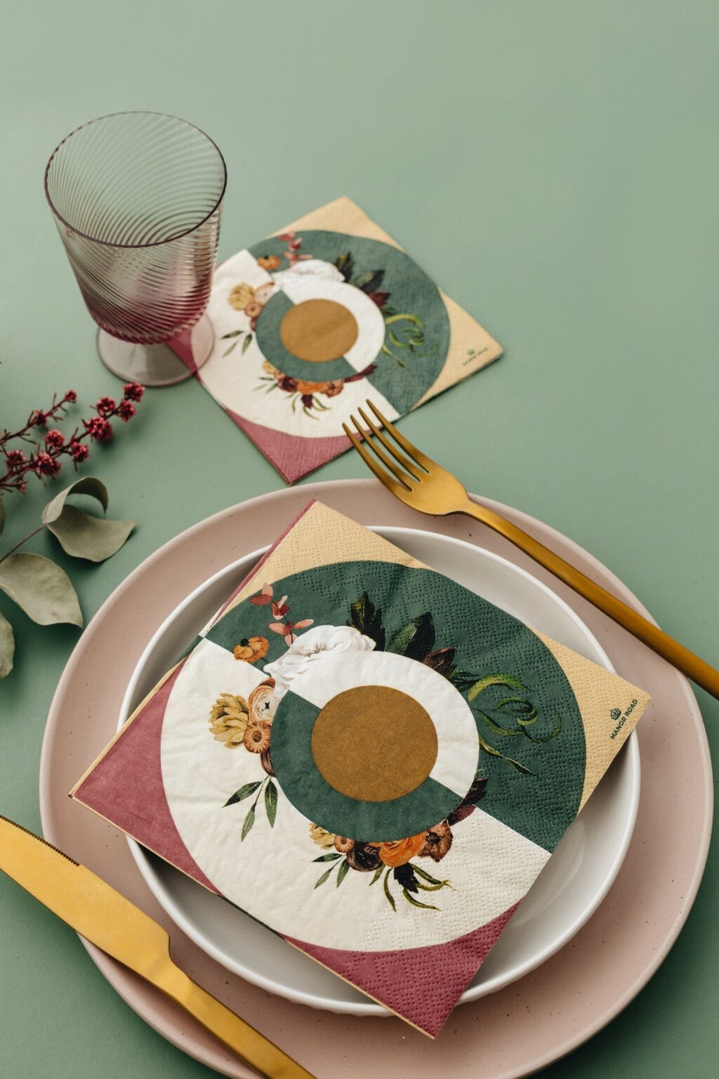 Luxe luncheonservetten met flora-motief, gemaakt van drielaags FSC-gecertificeerd papier — set van 20.
