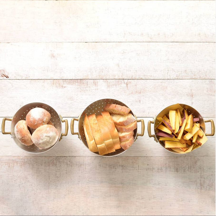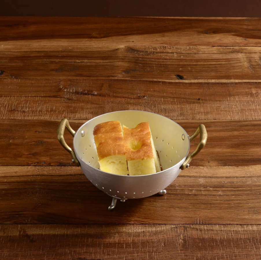 Het Ottinetti mini vergiet is een stijlvol en functioneel keukentool, gemaakt van duurzaam en nikkelvrij aluminium en voorzien van twee stevige messing handgrepen. Ideaal voor het uitlekken van kleine ingrediënten, maar ook perfect om snacks, brood of kleine hapjes mooi te serveren op een snack- of amuse tray.