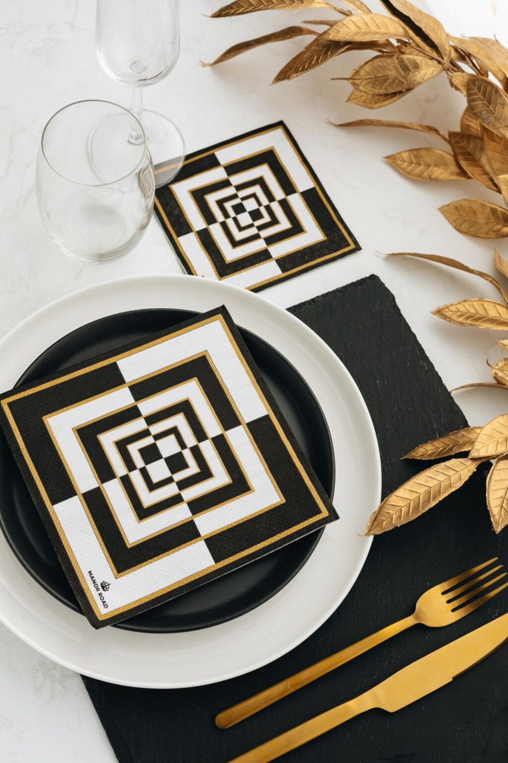 Luxe luncheonservetten met chic Stripe Deco-motief, van drielaags FSC-gecertificeerd papier — set van 20.