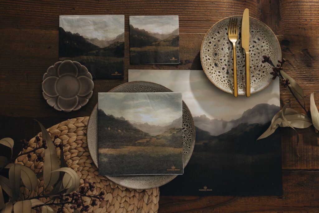 Luxe papieren servetten met The Landscape-motief — verkrijgbaar in cocktail, luncheon of dinner formaat, set van 20.